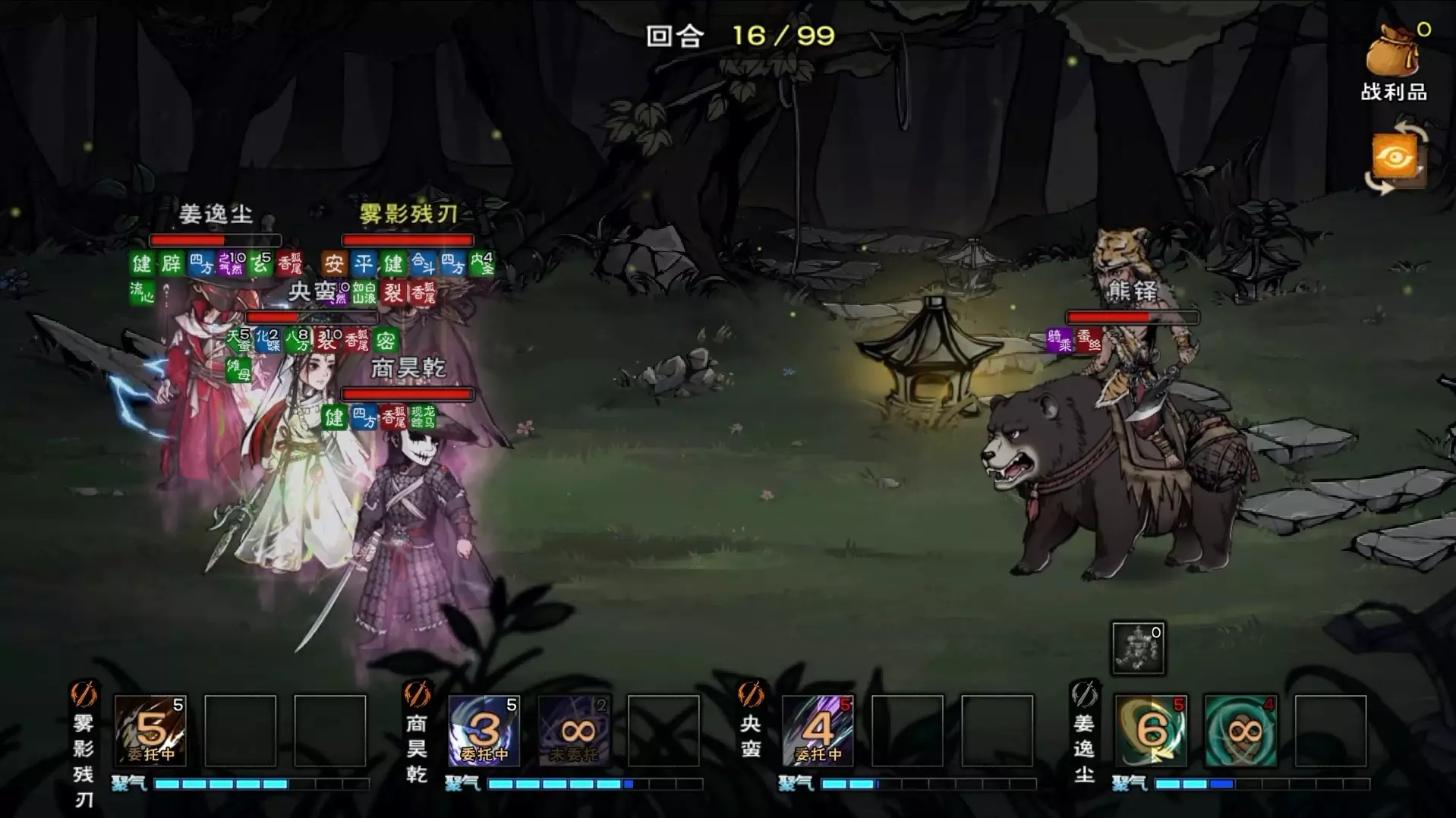 这是武侠手游《烟雨江湖》的游戏内容,一位零氪儒剑玩家,耗时217天将账号养成到108万战力,带着90级随从成功通关武神殿宿命关卡。