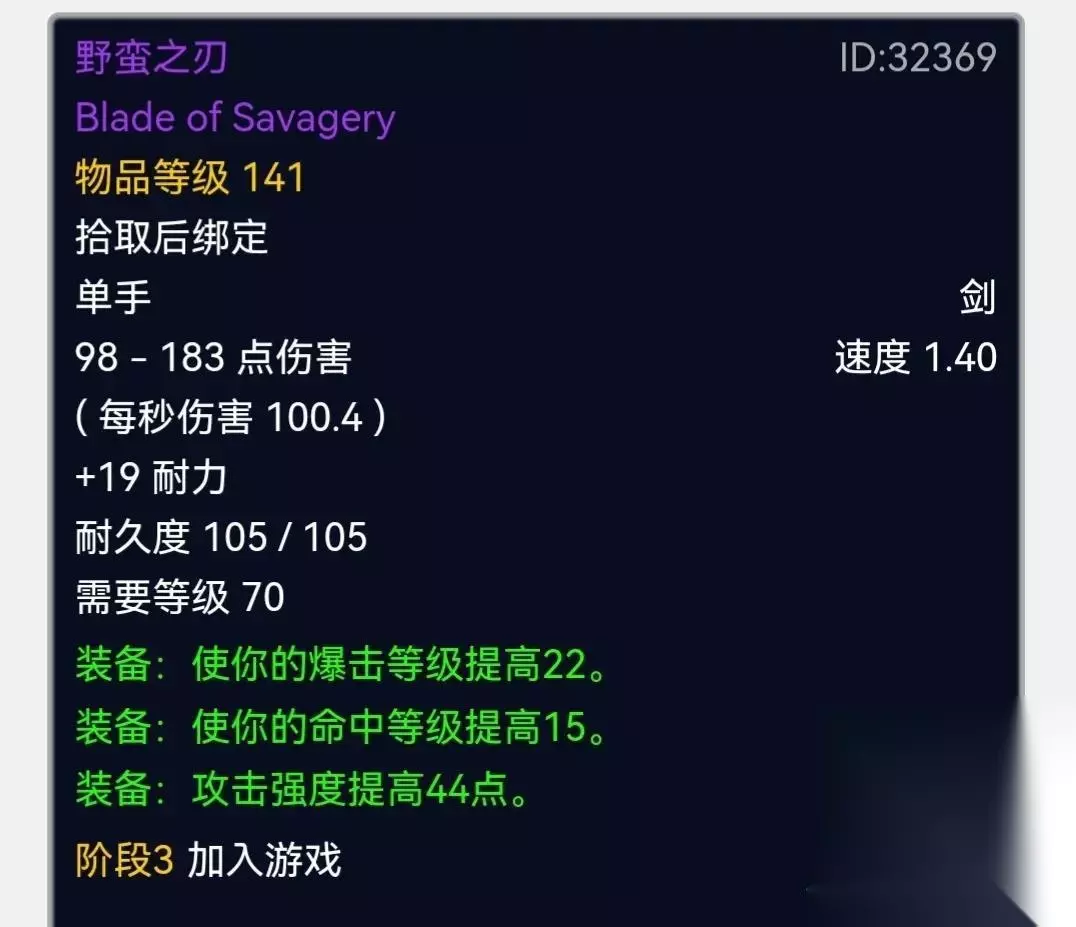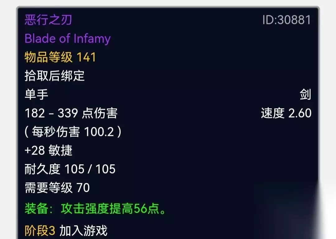 恶行之刃 海山出品,中规中矩的单手剑,小编的狂暴战就是拿着两把恶性之刃砍完了整个TBC,后来换了S4双剑!