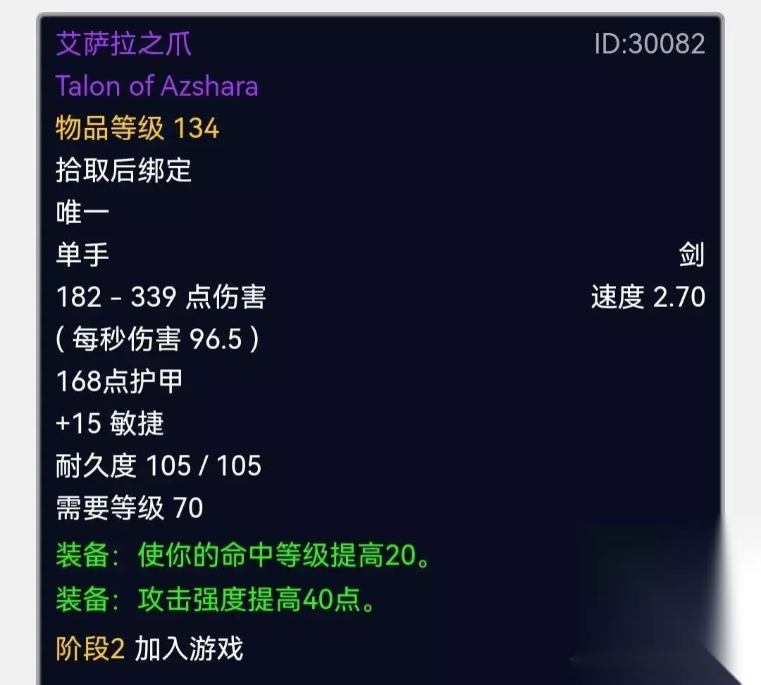 艾萨拉之爪 毒蛇神殿出品,P2阶段极品单手剑,基本是3千G以上的价格。