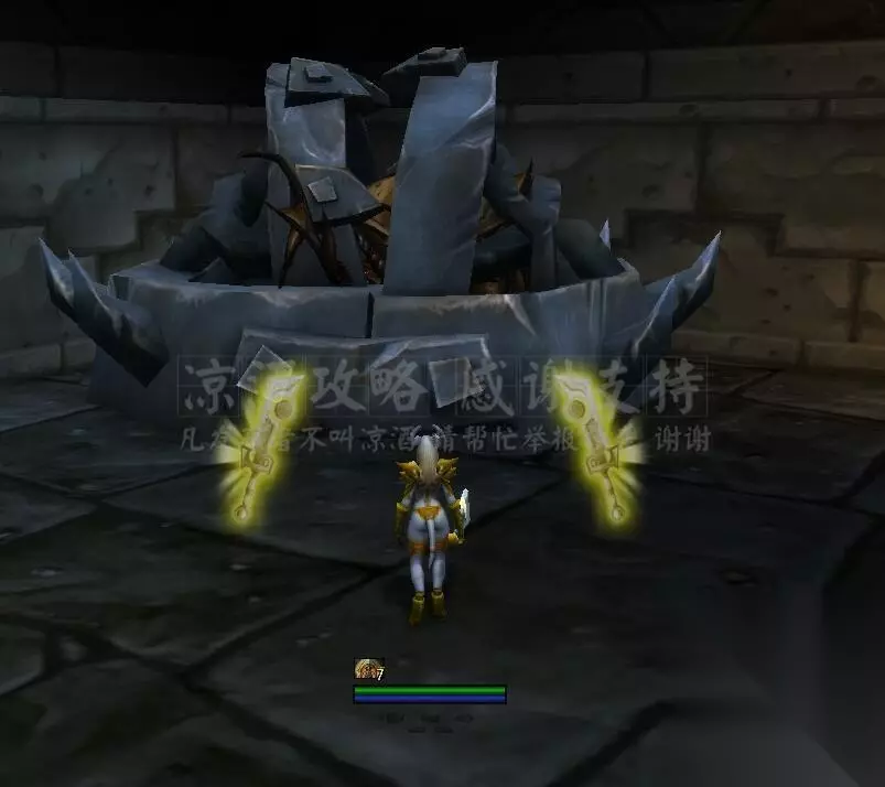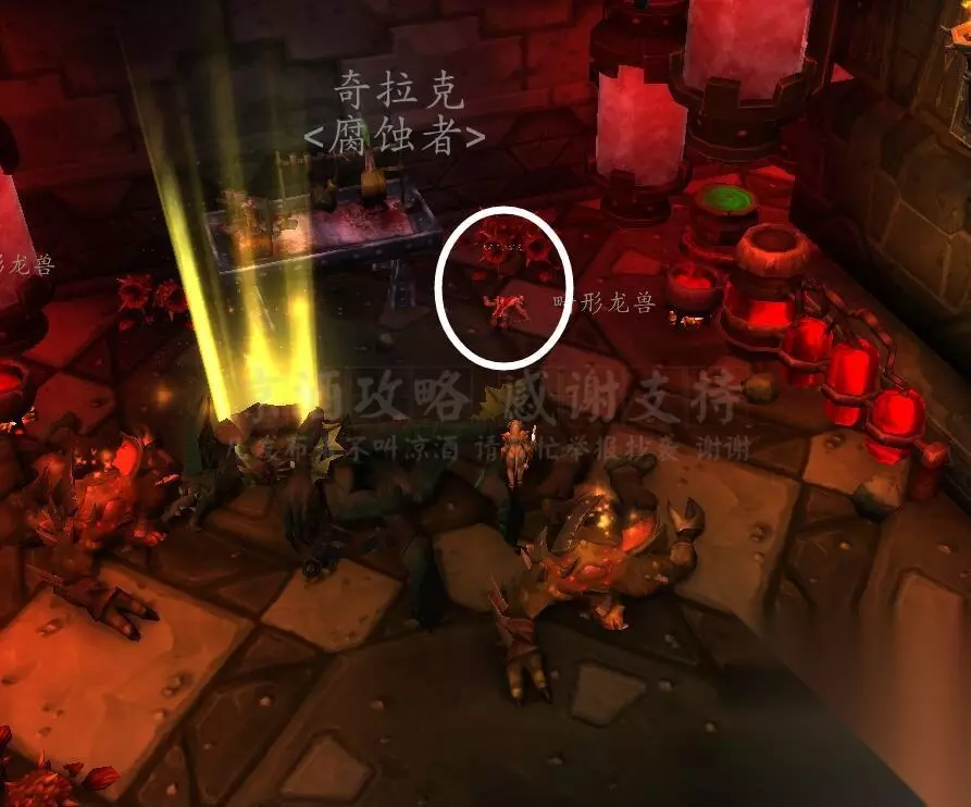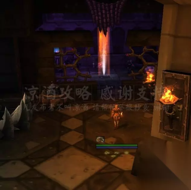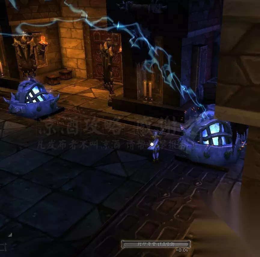 记得把副本难度调成英雄难度,进本。 进本之后第一个区域有几个这样的几个小怪守护一个能量柱的房间,把房间里的小怪清光能量柱就消失,所有的能量柱都消失就开门去老一房间: