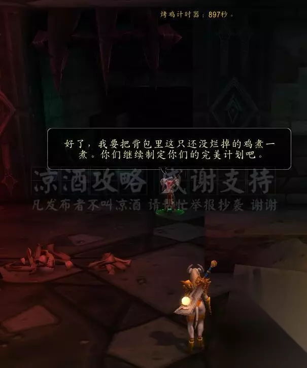 然后去一旁煮鸡,此时头顶(屏幕正上方中间)有时间提示,他会煮鸡(挂机)900秒: