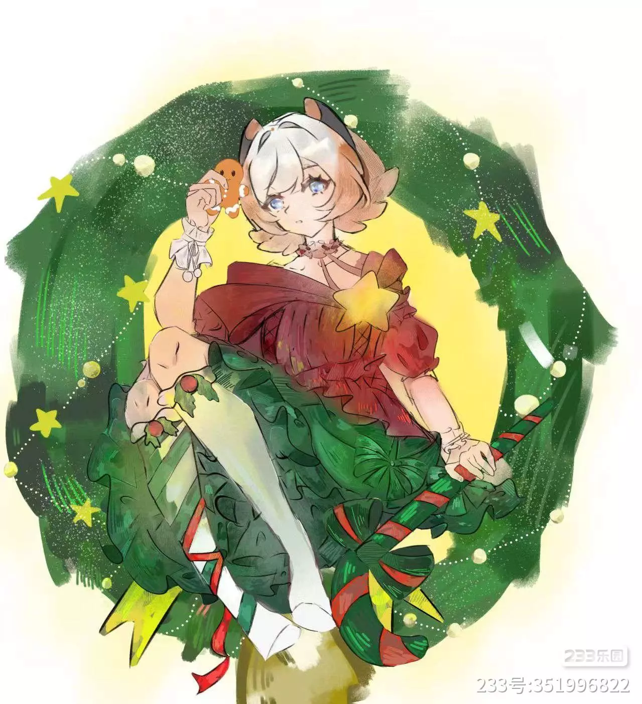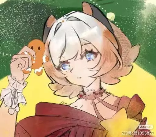 本图绘画标题为(冬日暖阳)以233娘为主,坐在草花上看着姜饼人,底部为体现暖阳画了氛围光#绘梦纪行