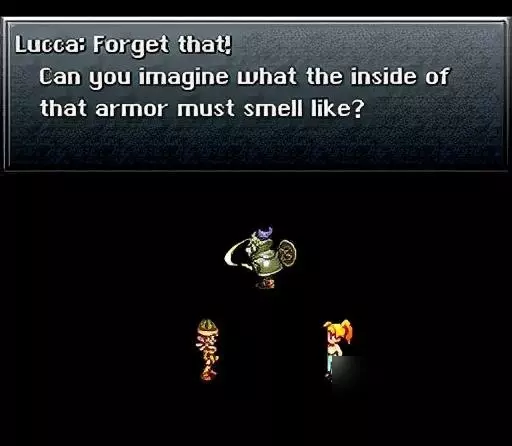结局12:反省会 条件:在姐姐进入封印门之后,项链充魔前 动画:玛尔与露卡两位少女对游戏中登场的男性角色进行一番海阔天空的评论,非常有趣。最后登场的克罗诺甚至也第一次开口了。