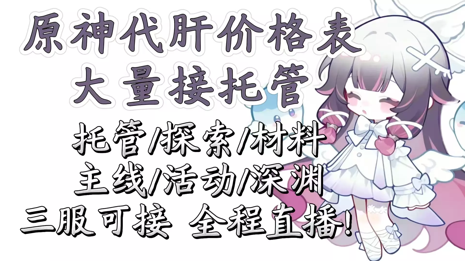 主接业务 原神 星穹铁道 绝区零 等明日方舟:终末地 营业时间 全天(没回消息就是在休息请谅解) 个人信息 已打上万单,全职代肝4年。纯手工代肝,信誉绝对可靠!…