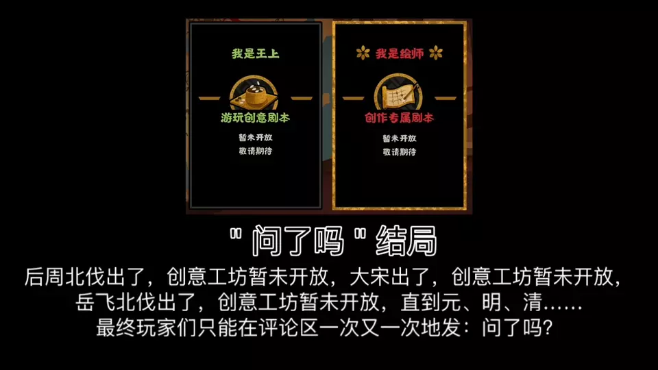 这是《无悔华夏》创意工坊第二期爆料解析,展示了创意工坊的相关内容,可自由编辑剧本,有不同节点剧情设置,还有“我是王上”“我是绘师”两种暂未开放的模式,能自定义城市数值等内容。