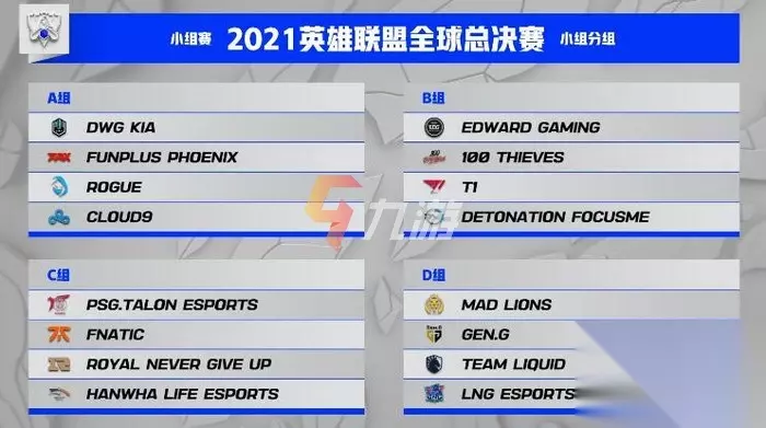 EDG是LPL的老牌队伍,是LPL迄今为止获得冠军最多的队伍。FPX则是S9的冠军队伍,本次LPL春季赛夏季赛的亚军,也是被LPL中最被看好的队伍。RNG简称皇族,2021MSI冠军,队伍实力均衡,也是S赛常客。LNG,前身Snake俱乐部,被誉为本次S11的黑马队伍。 除此之外,东南亚赛区PCS中也有两只中国台湾战队,分别是PSG.Talon Esports、Beyond Gaming。其中PSG在C组,而BYG则是0:3无缘小组赛。