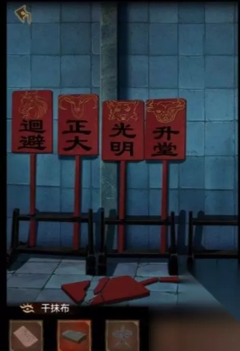 17、在法庭上,给娃娃装上头和手臂,把地方法官的公章放进盒子里,根据案件记录解二次方程,开彩票黑绿红白5081,得到虎眼石。 18.出去完成右边的灯笼小游戏,获得狗眼。 19、朝堂内,安装虎眼石、狗眼石。根据柱子信息:狗的断头不能动,龙的断头在中间,老虎的断头在上面,才能解开封印。