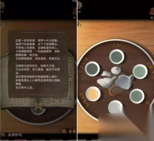 11、右边房间的书房里,右边的书柜里有一个盒子,里面装着茶粉和品茶理论,左边的书柜里有新的官方标准,书桌上的茶具放在里面一个装有茶粉的盒子。 12.然后订购茶壶并按名字放置。点几杯尝尝,得到细长的铜片。打开右侧书柜下面的柜子,得到蓖麻油和朱砂粉。