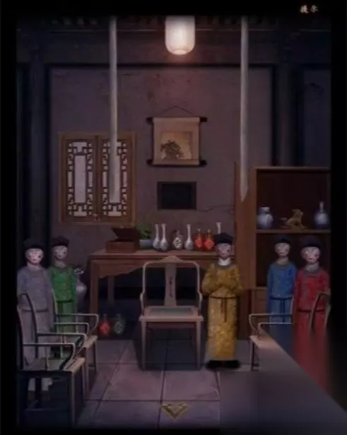 7、在院子里,用水和火棍打倒左边树上的风筝,得到纸风筝,用尖刀在水箱里戳一只蝎子,得到井的把手,安装在以及放一块干抹布以获得一块湿布。 8. 用湿布擦拭右侧房间的四把椅子。用锋利的小刀切开右边的大柜子,得到绿色和蓝色的纸扎衣服。 9、根据桌上的草、茶、酒、瓶子的数量得出顺序。从信件内容中获取数字。打开密码箱6253,得到发夹。