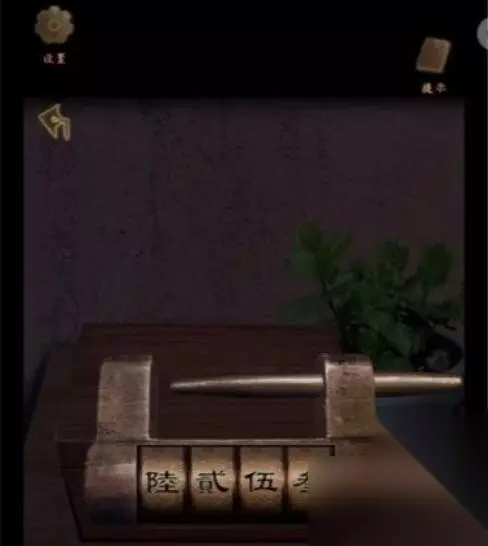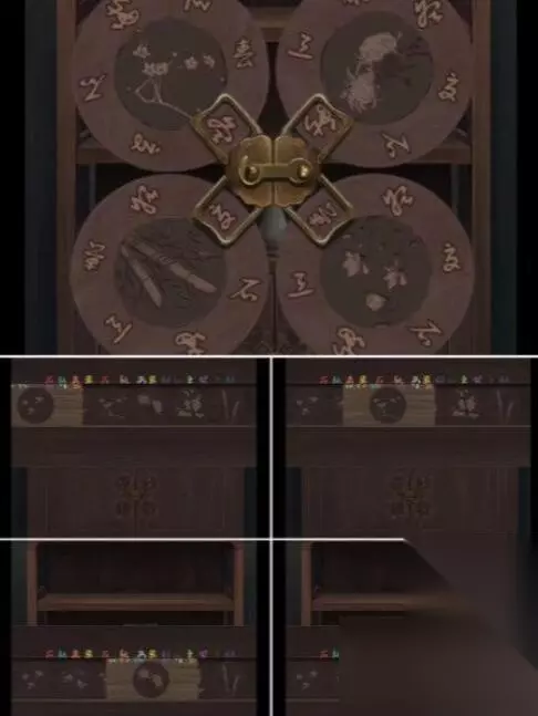 16.从左侧架子上取下县令的印章,放入穿孔木板,滑动即可得到梅、兰、竹、菊的信息。打开柜子得到雕像的手臂。