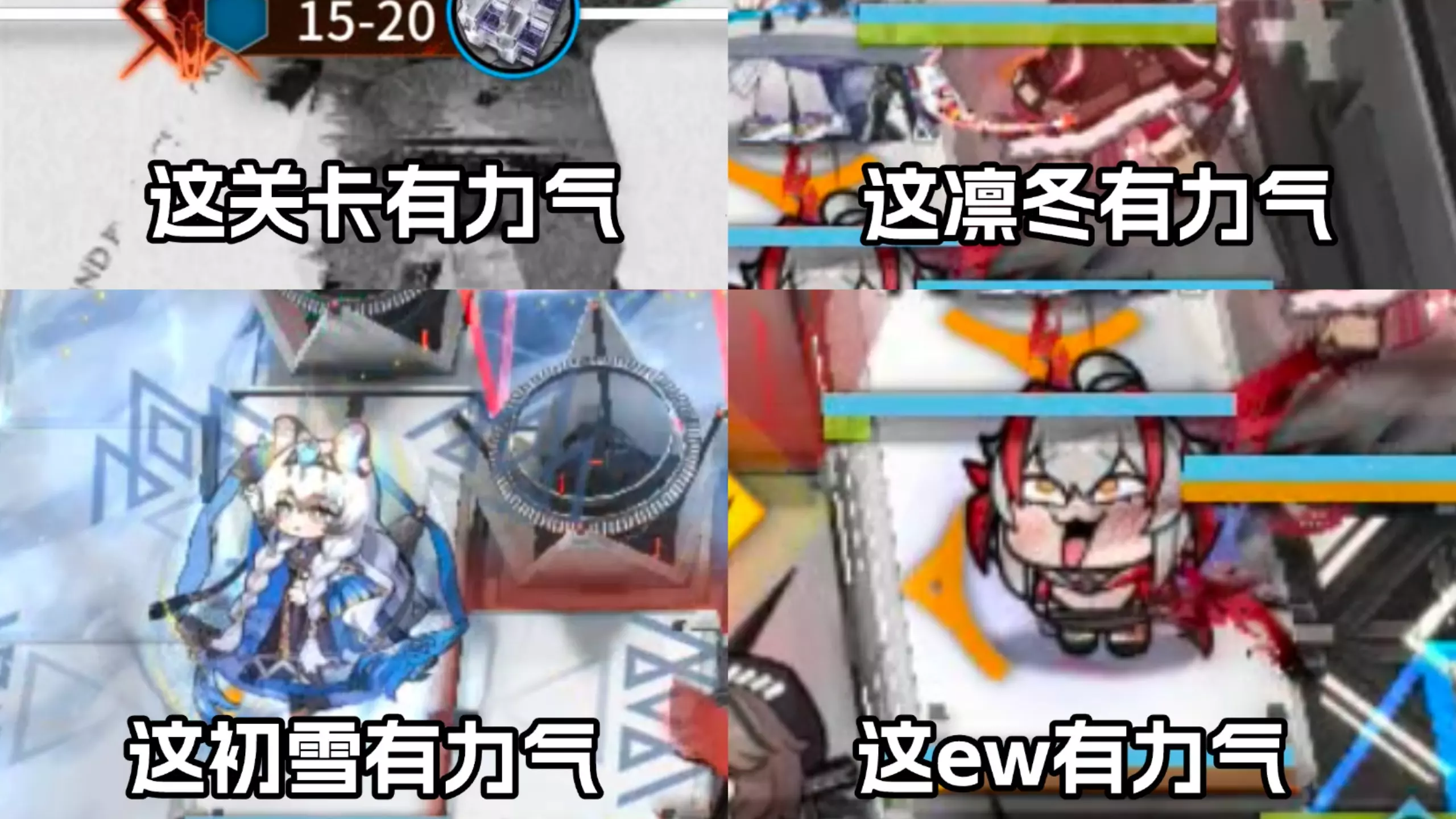 问就是没有黎风,玩不起高配。 大概思路就是骏卫碎甲一波管理员炸一波,陈和余烬在管理员那波开大。 开局重击攒差不多三格技力,起手骏卫大招,管理员战技,看怪物要攻击了余烬战技,陈连携,挨打触发余烬连携,管连携,骏卫战技,骏卫连携。 连携cd转好了就管战技-余烬战技-陈连携-陈战技-管连携-管、陈、余大招(管没大招就在陈、余大招后放战技。 循环就行了 除了管剩下仨人没练度打着刮痧,物理队练度要求忒高了,手里还一个二潜的别礼没练。想去玩冰队了(
