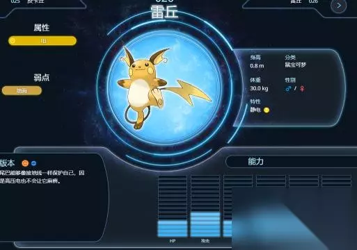 1、在宝可梦剑盾中,值得玩家练的电系宝可梦有【雷丘、三合一磁怪、电击魔兽、闪电鸟、自爆磁怪】等等,如下图所示,雷丘拥有电属性,特性是静电,自身的物攻、特攻和速度值都是较高的。