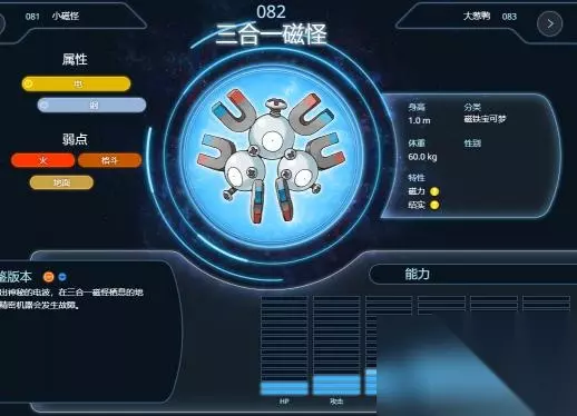 2、三合一磁怪拥有电与钢属性,特性是磁力和结实,自身的特攻值比较高。