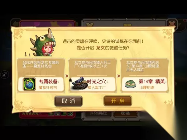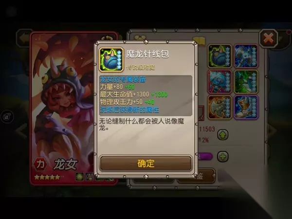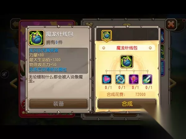 龙女的觉醒装备——魔龙针线包,大幅度增强了龙女的生存及输出能力,使她在战场上越战越勇,无坚不摧! 专属装备合成材料