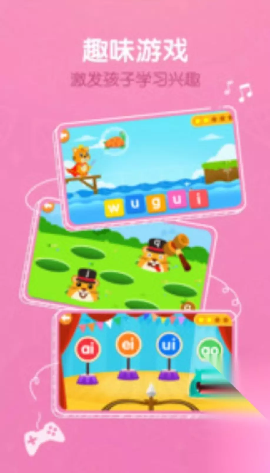 《儿童拼音王国》这个游戏是为一二年级的小朋友研发的,在游戏中会通过做游戏的方式让小朋友学会拼音,会有很多语音来进行发音教学,结合着游戏中的图片和动画,可以很快的吸引小朋友的注意。在学习完游戏中的体验后,还有考试和评估的玩法,通过钓鱼游戏的方式可以很快的学习。在玩的过程中轻而易举的学习拼音,游戏中是非常可爱卡通的场景。 高速下载 普通下载 优先233乐园APP下载 上面的这5款已经为大家介绍完毕,受欢迎的拼音游戏有哪几个,如果有自己喜欢的可以去下载体验,也可以分享给自己身边的小朋友们,让他们在这些游戏中学习更多的汉字和拼音,游戏里面也有专项训练和巩固练习,非常的推荐给小朋友。