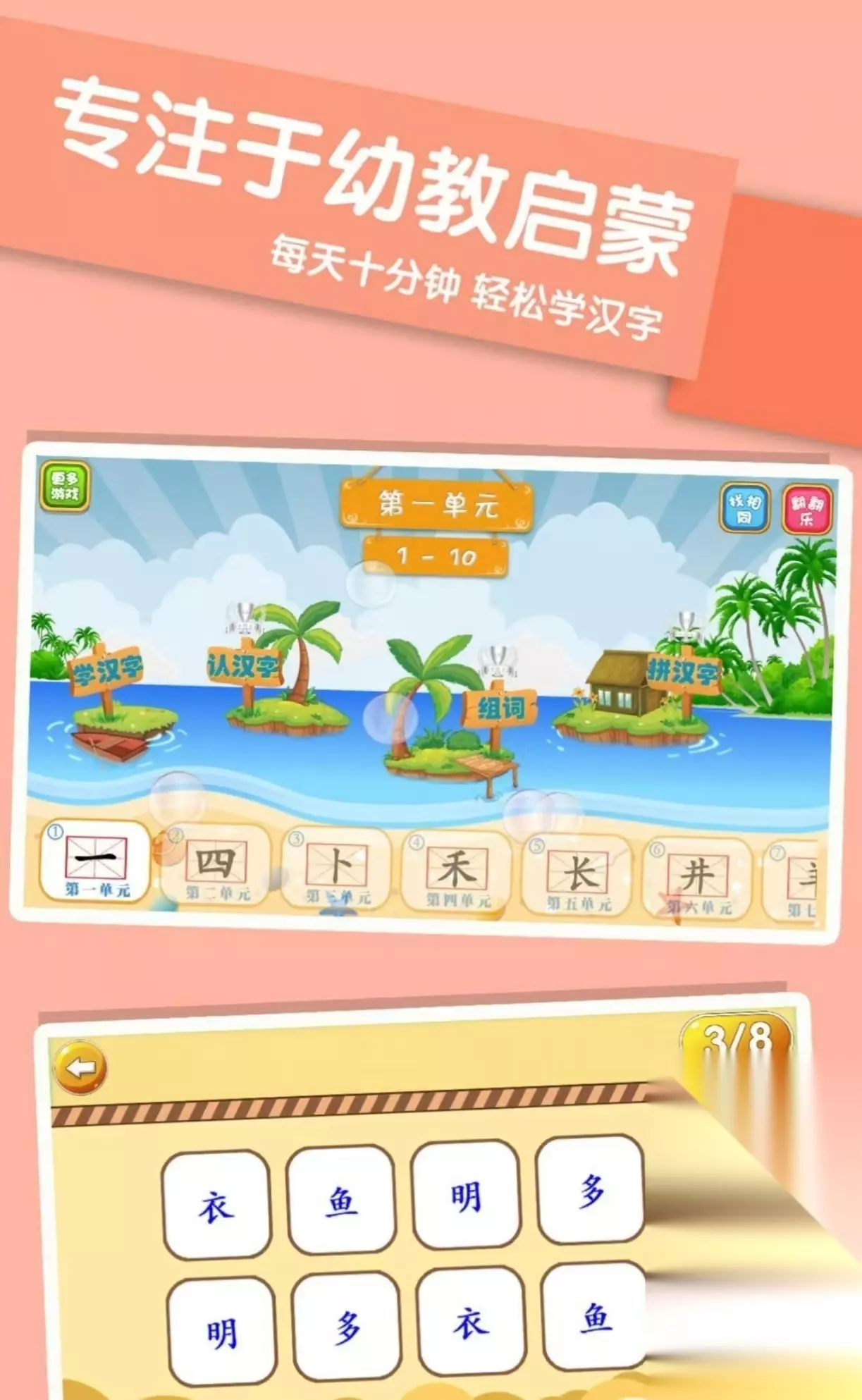 《奇妙的拼音》通过消除游戏来进行闯关的玩法,在屏幕上会出现很多的拼音字母,玩家可以随意的移动出现的字母,使他们合成组合成新的汉字,当合成成功时汉字会消除掉。把所有的汉字消除之后就可以来到下一关,每个关卡里出现的汉字拼音种类不同,出现的拼音会越来越多,游戏的下方可以使用提示,还可以一键进行洗牌。 高速下载 普通下载 优先233乐园APP下载 2、《贝乐虎拼音》