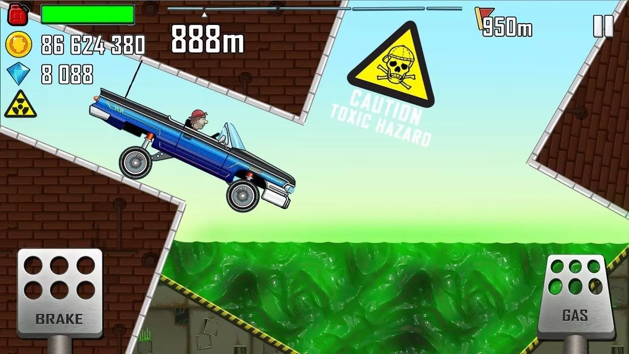 这是1.65.0版本《登山赛车1》的游戏实况,展示了配置为max/11/max/max的警车,在工厂赛道跑出了16854m的成绩,过程中可收集金币、道具,还有特技加分。