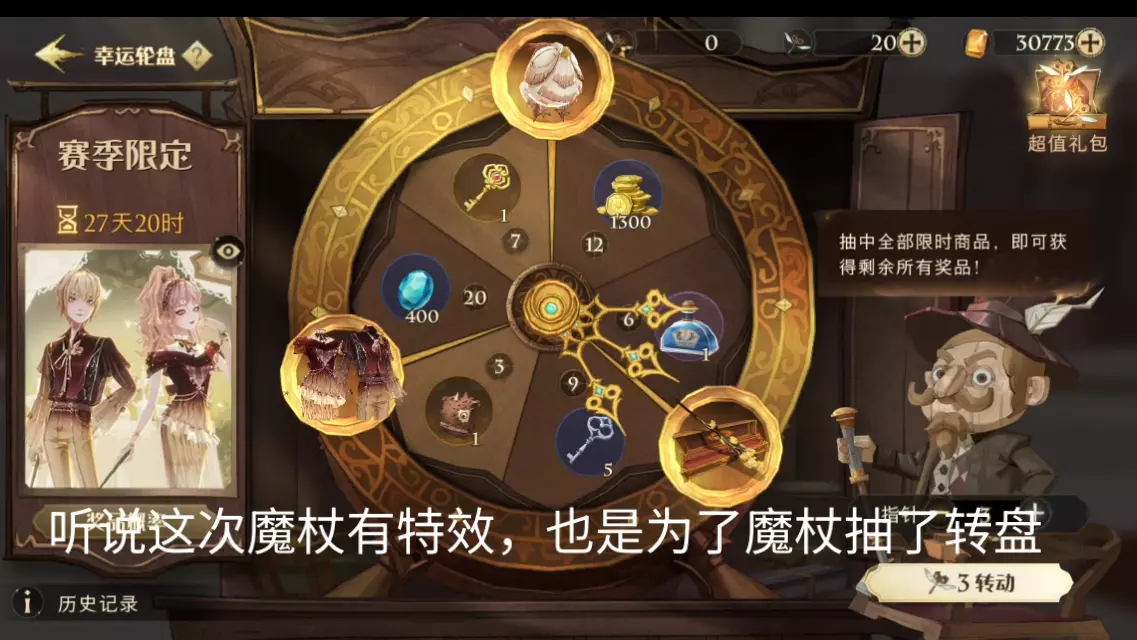 这是《哈利波特魔法觉醒》的赛季限定幸运轮盘内容展示,轮盘奖励包含银杏回光魔杖、配套服饰等,还呈现了带有银杏元素的角色互动动作,该轮盘当前剩余27天13时,且已可获取全部奖励。