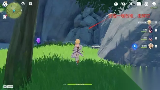 我们来到不同点,会发现一堆石堆,击碎它!