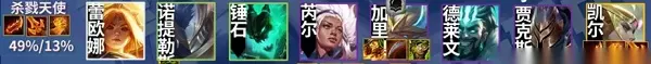 【阵容搭配】 蕾欧娜、诺提勒斯、锤石、芮尔、加里奥、德莱文、贾克斯、凯尔。