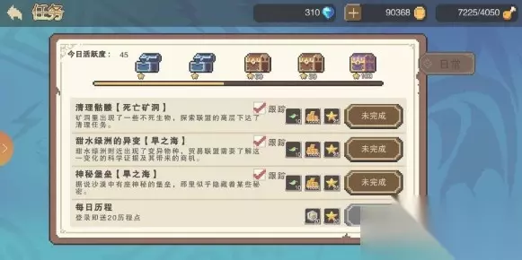 2.日常任务 日常任务而也是可以作为我们去获得钻石的一个途径的哦,当然景观很多的日常任务并不能直接地去刷钻石的哦,但是我们可以通过去不断地完成任务,快速的积攒你的活跃度的哦,当然你在达成到一定的活跃度的话就可以开启宝箱奖励的,里面也是有超多的钻石。