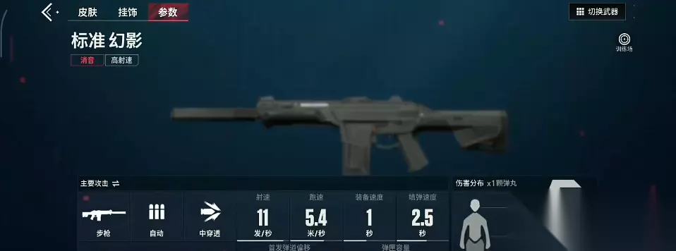 这是一把消音武器,敌方是看不到弹道的,也不会听到40米以外的射击声,因此幻影在中近距离当中作战的优势是非常大的,如果需要进行中远距离的对枪,其实它就是稍微显得弱势一些了。