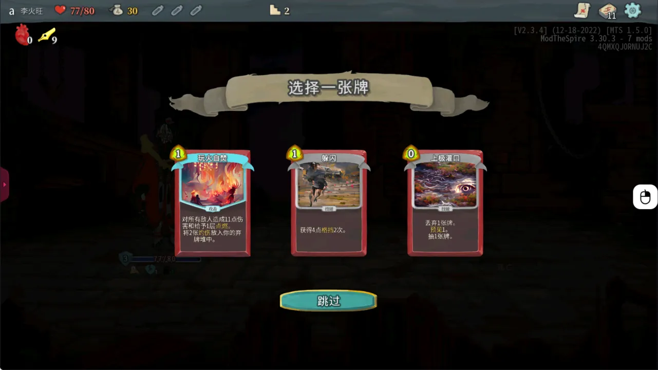 到第二手抓牌了,感觉火子哥没有强力过度卡啊,数值都太低了,很多牌都是需要烧牌来配合的,但又看不到大烧