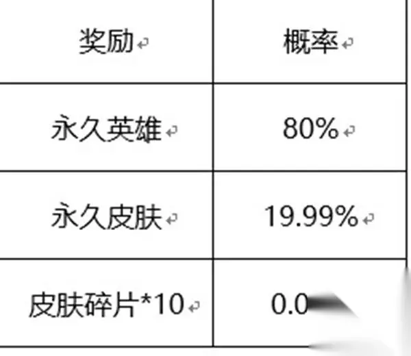 2、宝箱开出奖励概率一览