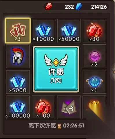 许多游戏都有“在线奖励”设定,《英雄召唤》也不例外。不同的是,《英雄召唤》的在线奖励相当给力,不仅有日常货币、各种召唤珠,还有极为珍贵的魔钻。魔钻是获取极品英雄的重要货币,如果你想不花钱抽取极品英雄,请一定记得按时领取在线奖励。 许愿神殿勿错过