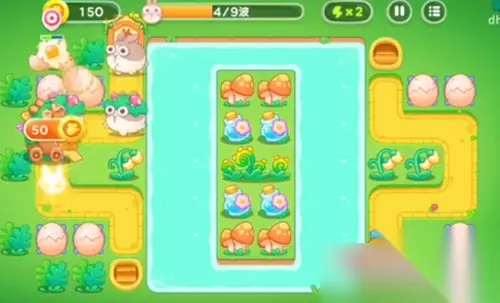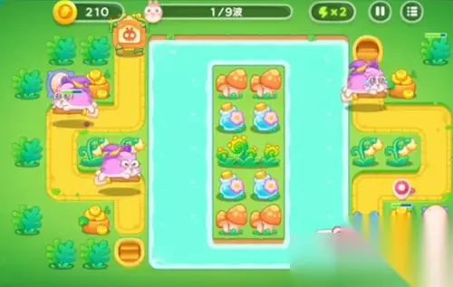 《保卫萝卜4》绿野奇缘第34关高分通关攻略 1、首先,放置一个塔炮来攻击兔子。