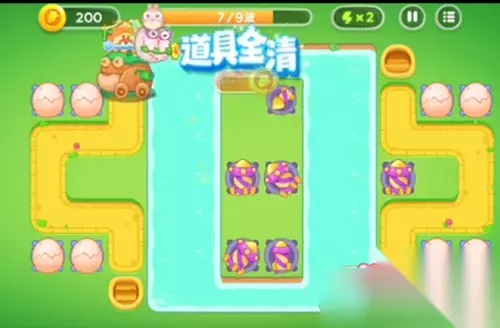 4、在这一波中,有七个塔炮,只需注意摆放位置就能快速清理完毕。