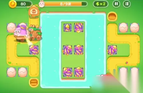 3、持续增加并注意摆放位置,同时攻击兔子和障碍物。