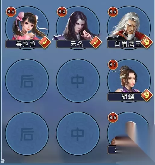 这类阵型一般会选用311/302阵型(擂台上更多玩家选择302),11都是拳,作为防御。3作为攻击排,一般有两种选择,第一种是3个剑,前排必须是高闪避的六脉减防剑,放弃攻击属性,全力闪避,用闪避达到保护后排的作用,然后自身不提供伤害,只提供六脉的减防效果,为后排另外两个六脉剑提供输出空间,本身最理想的角色选择是用阿星,有2次攻击,经脉选择免死,可以多一些容错几率。 这种阵型比较极端,放弃了剑打后排的技能优势,转而充分利用剑的减防效果,最快速度减少对面防御职业的防御,提供输出。并利用剑闪避优势保护后排。 优点是前排闪避可能起到意想不到的效果,对付高防御阵型的拳有比较快的效率;缺点是容错率低,因为前排是闪避剑作为保护,所以一旦被对方攻击职业命中则可能直接导致减员,而且只要前排闪避剑一倒下,后排的2个六脉剑就只能等着被人宰割了。 这个阵型对后排六脉剑的要求和闪避阿星的要求都很高,剑除了要做一些基础攻击暴击外,还必须要加经脉免死,否则很容易失败。 这个阵容对上对面是有霸体的拳主的话会比较麻烦;此阵型遇到对面是反震拳的话减防御技能基本失效,而且会被反震伤害,比较危险;此阵型遇到对面是防御拳/反震拳+独孤剑的组合比较危险,容易被对面独孤剑秒杀。克制方法可以给后排2个独孤剑带一些反震属性(牺牲属性多,并不推荐) 另外一种选择就是用一个弹指拳代替阿星作为前排,同样也可以选择闪避拳或者防御拳,这样减防效果会差一些,但容错几率相对增加不少,效果未必比3剑的差。 这个阵型其实是用剑代替刀,用减防效率代替刀的暴力输出,进行定点清除。由于放弃了剑本身技能打后排优势,这样用基本上都是要拼下运气和效率。这个阵型除了减防效率高以外,最大的好处就是剑的基础命中高,用这个搭配的话对面闪避前排基本讨不到任何好处。 这种阵容如果把后排一个剑换成暴击刀也是一种搭配,降低一些减防效率靠刀的暴击爆伤提高输出效率,作用大同小异,不做过多描述了。 1) 独孤打后排流派