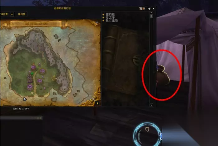 2、这是一个解密任务。 来到坐标( 42.91 )的位置找到小帐篷里的布袋子拾取。如下图