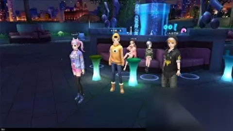 亮点五:温情约会广场,神秘温泉之地 2.0版本的更新,同时也将温泉广场场景进行了华丽升级。除全面提升美术风格之外,还从人文设计的层面进行考量,满足玩家对场景中不同区域的不同互动需求,以求全面优化玩家的游戏体验。全新温泉广场的大部分区域以冷色调为主,各色荧光球烘托出神秘的气氛,而静谧的水池和远处繁华的都市夜景交相辉映,建造高端时尚的约会场所。露天的舞台则以紫粉色为主色调,与温泉广场整体色调形成反差,强调突出热舞区域的青春活力,成功调动舞者的兴奋点,让玩家一起带领节奏、嗨翻全场!