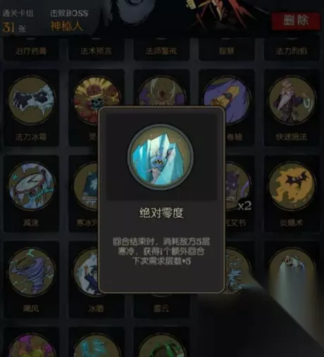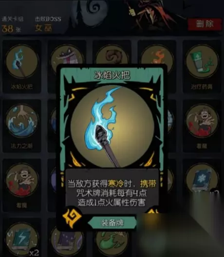 2.要想达成成就至少要有两个装备槽,当然装备三个更好,第二章的武器拿冰焰火把,用来输出,第三章要拿到饥饿魔典和致死霜冻,是为了增加冰焰火把的输出,这样组合下来这样一个回合就能打出60点伤害。
