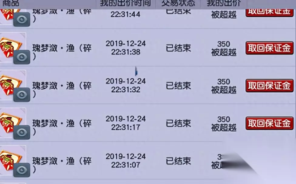 每次参与竞价,需缴纳一定数额的梦幻币保证金。成功竞拍后,成功支付提取拍品后保证金将自动返还,但若在规定时间内未能成功支付提取货品,保证金将被没收。