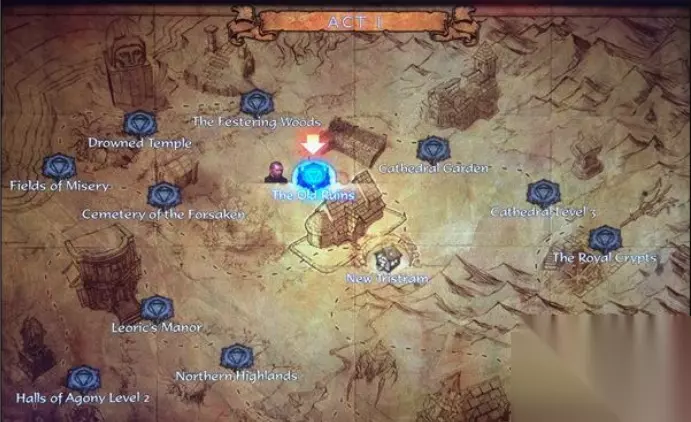 彩虹关入口: 有了牧牛杖之后就可以开启隐藏关了,具体地点如下 首先来到第一幕,传送到崔斯特瑞姆废墟(下图)