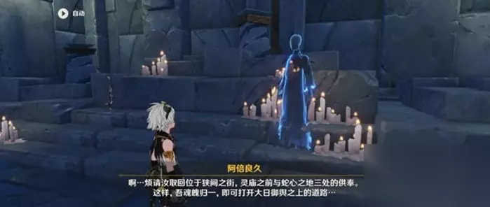 5、我们获取线索后,前往狭间之街、灵庙之前以及蛇心之地三处地方获取供奉。 6、狭间之街供奉位置,如图所示。