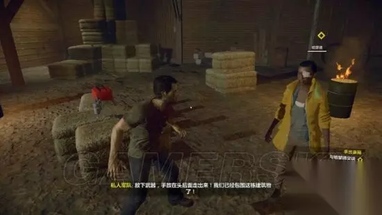 step10.接着去农场找哈蒙德,哈蒙德对于还存活的弗兰克感到意外。 弗兰克表示他是来帮助哈蒙德等人劫机,可是与此同时已经有私人军队的人包围了农场。 弗兰克需要外出击退三波士兵。 当弗兰克回去告知哈蒙德已经解决了农场内的敌人时,布莱克波恩表示自己想将弗兰克做成标本,因此她将劫机的事告知了暗卫军,所以暗卫军会埋伏在酒厂门外。但弗兰克表示计划继续进行,他不会让哈蒙德等人困在这座城市。