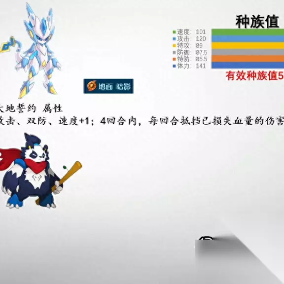 大地誓约是一种配合技能,可以强化攻击、双防和速度,并在四个回合内每回合抵挡已损失血量的伤害。这个技能类似于昆仑的绝影棍。绝影棍可以在残血状态下收割身上有盾的敌人。但这种情况下,先手攻击可能会被阻止,所以卡修斯的技能更为强大。 虽然卡修斯的速度不快,但如果他在后手使用这个技能,那么他可以跳入比自己速度快的精灵,通过卖血来实现逆袭。