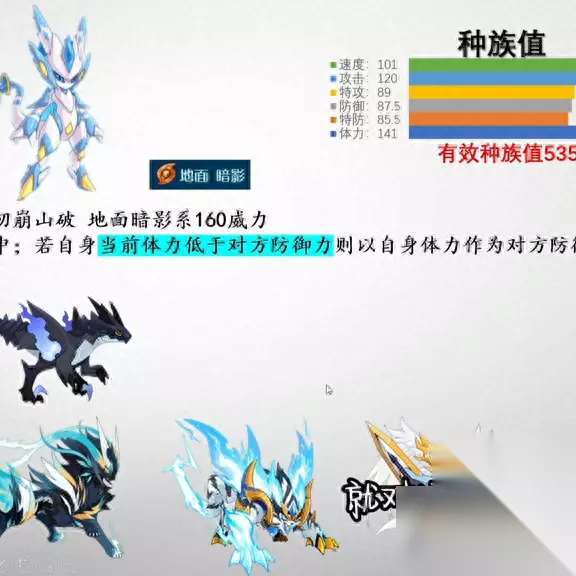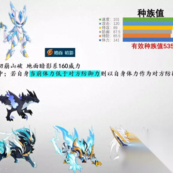 卡修斯拥有一项强大的技能,名为「万骨崩山坡」。这个技能具有必中效果,速度为160。它的威力非常惊人,与雷伊、盖亚缪斯布莱克等精灵一样,在二次进化后没有必中效果的技能,这对玩家来说可能会带来很大的困扰。当遇到邪龙怒、致盲飓风等技能,或者面临命中下降的情况时,这个技能的必中效果就显得非常重要。如果卡修斯当前的体力低于对方的防御力,那么这个技能将以卡修斯自身的体力作为对方的防御力进行计算。在游戏初期,这个技能可能会稍显无力。一般情况下,防御力为220的精灵的联防值大约为280左右。只有当卡修斯的体力值低于对方的防御值时,这个技能才会稍微显示出一些效果。