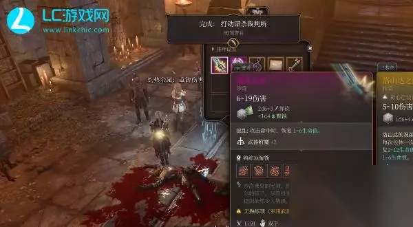 【博德之门3装备图鉴全集】 博德之门3杂乱之剑获取方式攻略 名字:杂乱之剑 质量:珍稀 特性:6~19损害,2d6 3挥击, 1d4黯蚀,武器附魔 2 专业技能:错乱:进攻击中时,修复1~6血量。 获取步骤 1、首先地图中要寻找【谋杀裁判所】地理位置,再跟随地图提醒的坐标位置方位,前往目的地,实际座标为【谋杀裁判所】X:-1265,Y:499。