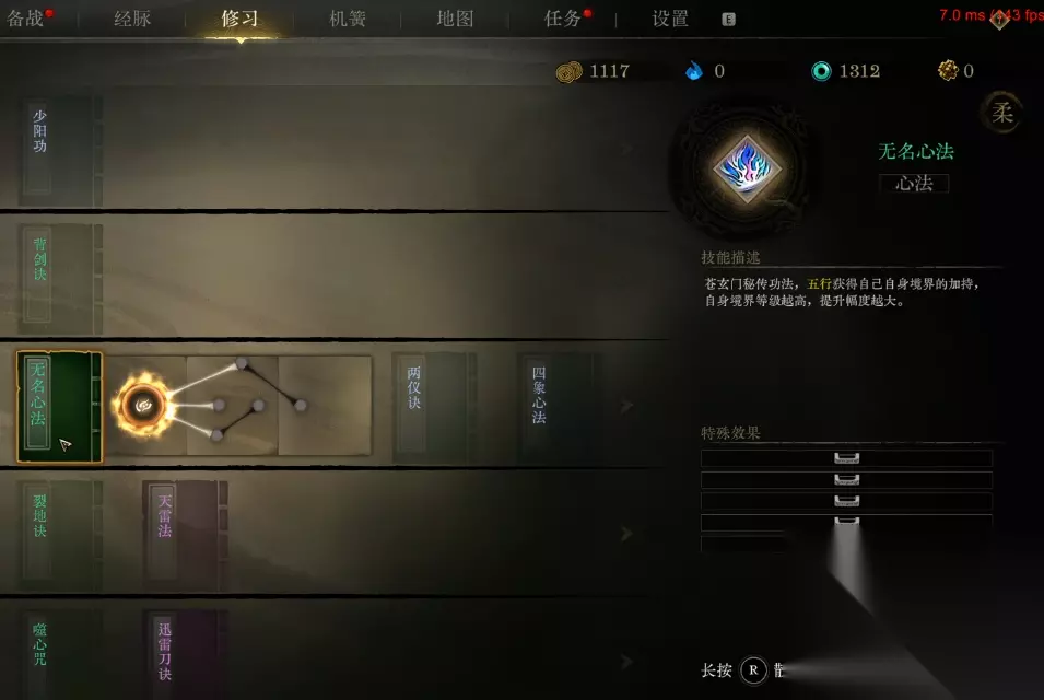 在技能点上,分为了外功和内功,也就是修身和修心。通过刷各类副本任务玩家能获得技能点和修心点数,玩家在技能点上可以随机解锁,点错了也能重置重新来过。在修心上则是一点点的提升,每次提升都能带来战力的加成。