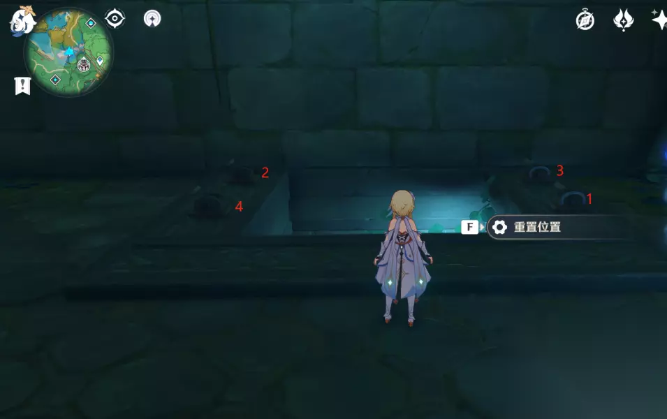 跳下去之后,还有个比较复杂的机关,搞了好久才搞定的。 这里一共四个开关,要按照一定顺序打开才行。