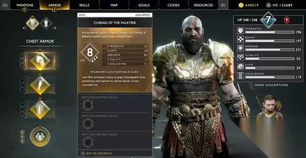 《战神4》中的装备非常多,部分小伙伴在选择装备时可能比较迷茫,今天给大家推荐几套比较好用的装备,那么请看《战神4》好用装备推荐及获得方法,希望能够帮助到各位。 一周目 奎托斯-女武神护甲 在一周目中,女武神护甲套装(史诗品级)很好用,这套装备能够极大地提升力量、防御、卢恩符文和冷却性能