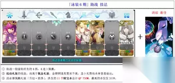 具体如图,本次活动借用最多的应该会4辅助、高宝高练「冲田总司〔Alter〕(Saber)」,后者主要适合缺少输出的御主,适用人群不多。因此,确保4个拐位有3位穿戴满破活动礼装「沉入深渊」即可。 至于「贝拉·丽莎」,笔者认为没必要,仅11个副本可能用到,除了1个本QP收入260w,其余副本都低于100w,效果甚微。 4.主线支线攻略流程