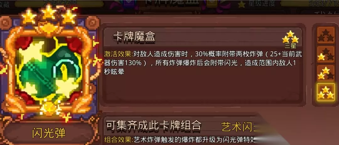 闪光弹有高触发率、高武器百分比伤害,CD0.5秒、范围伤害,爆炸瞬间控小怪的特点,成为了热门的选择。艺术炸弹则是点了闪光弹的前提下提高攻击频率。目前主流是单独使用闪光弹。 2.火焰融合
