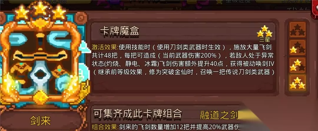 符的原配玩法,炼丹提升境界加强伤害和生存。成型的丹符伤害很高,生存能力很高,还有和符是同一个卡池的优点。萌新缺卡只靠修仙池子组的丹符就能稳定的搬砖噩梦3,就是速度会慢一点,捡丹药有点麻烦,这也是为什么不能成为主流玩法的原因。等一手官方优化炼丹流程。 8.剑修