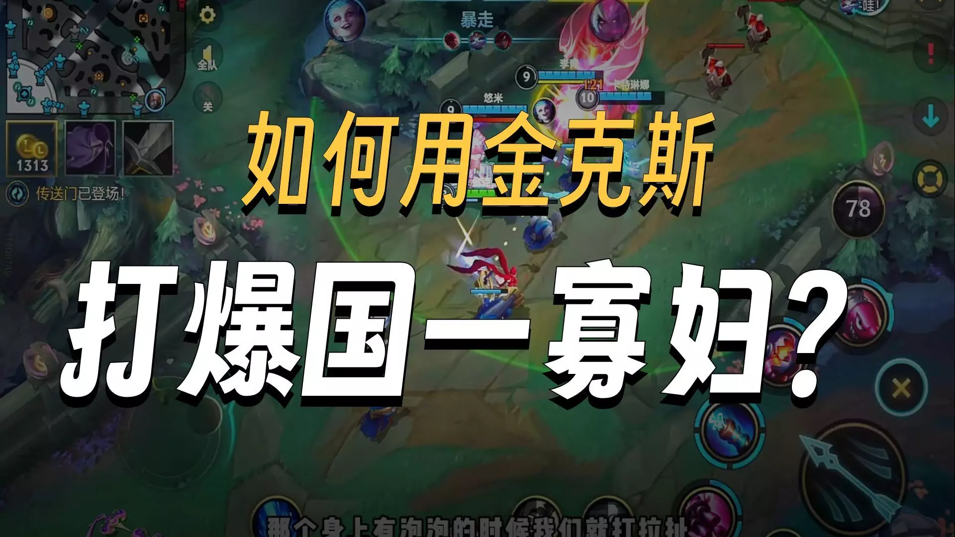 这是LOL手游赛季末的单排上分攻略内容,展示了使用金克丝在对局中的操作细节,分享破解唐人局的上分技巧,助力玩家用金克丝单排冲分。